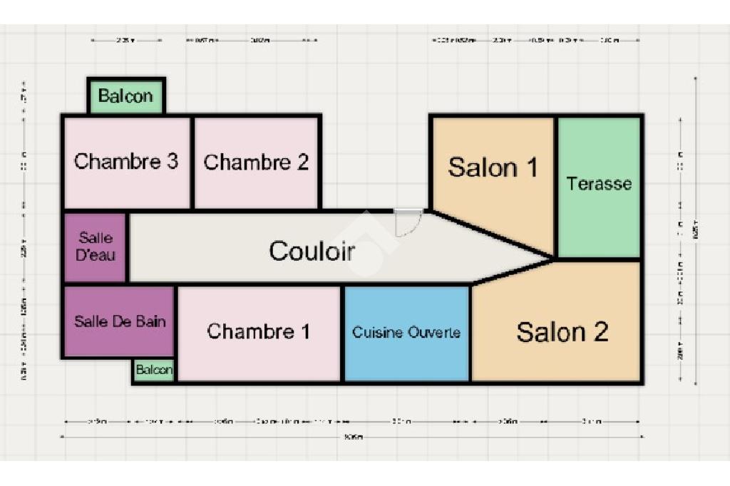 Un couloir mène à la partie nuit, où se trouvent trois chambres à coucher, . Une salle de bain avec baignoire vient compléter l'ensemble.