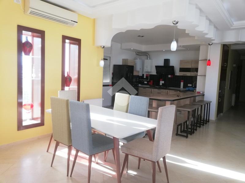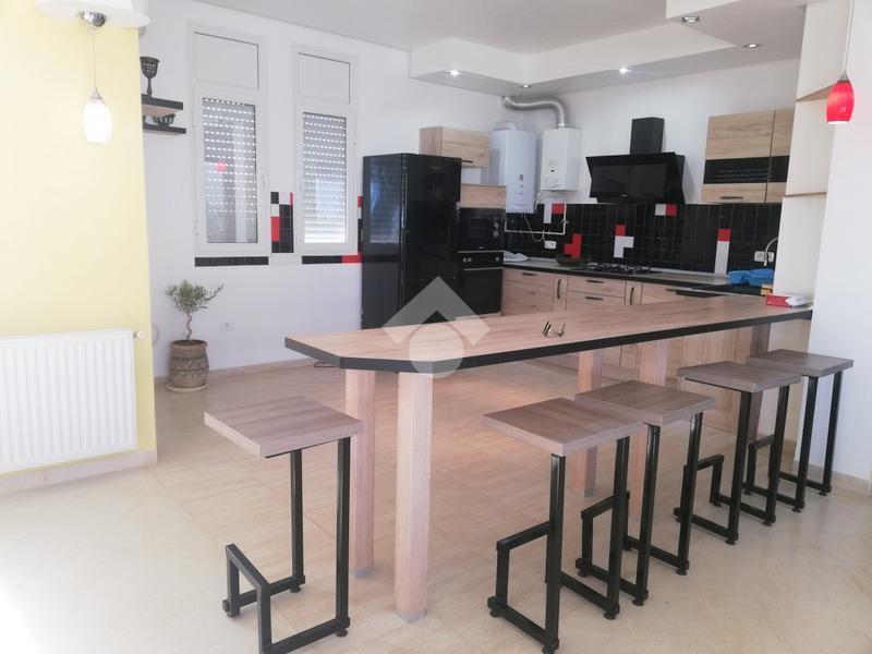 La cuisine est indépendante et entièrement équipée avec tous les électroménagers nécessaires (plaque de cuisson, hotte, four, machine à laver, lave-vaisselle, réfrigérateur). Elle s'ouvre sur un séchoir exploitable qui entoure l'étage.