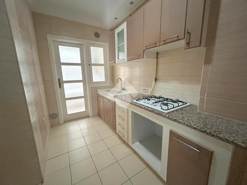 La cuisine est agencée et complétée par les éléments de rangement nécessaires.