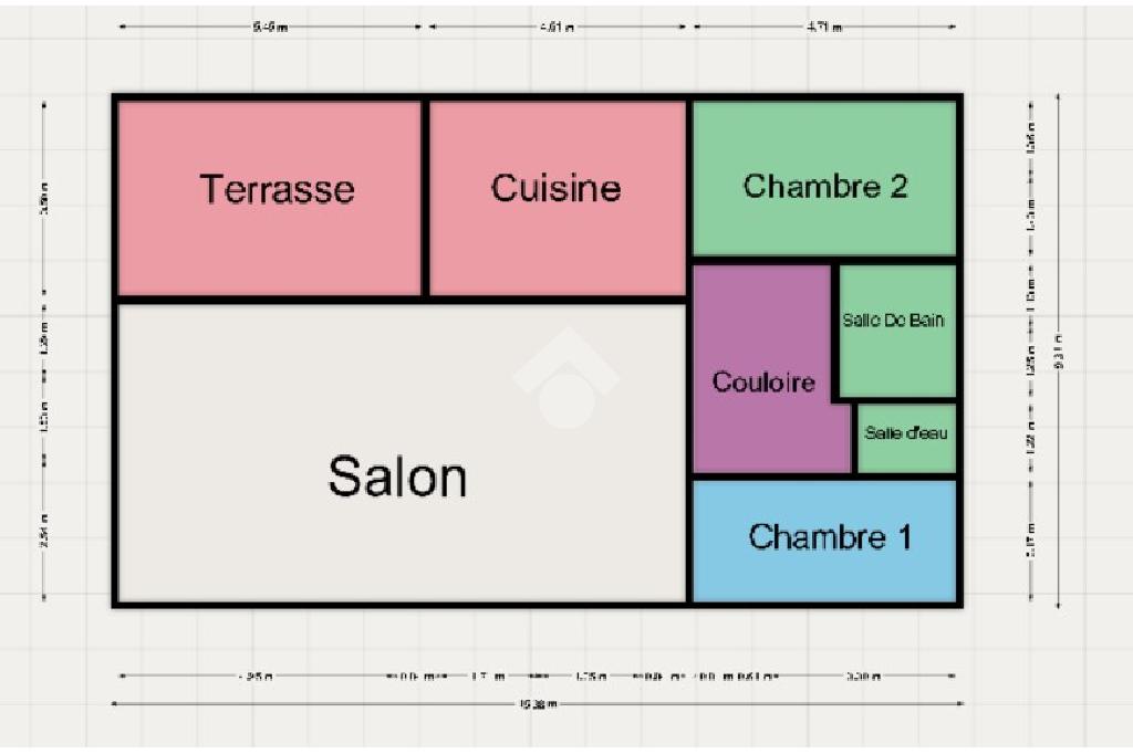 Un couloir mène à la partie nuit, où se trouvent deux chambres à coucher, . Une salle de bain avec baignoire vient compléter l'ensemble.