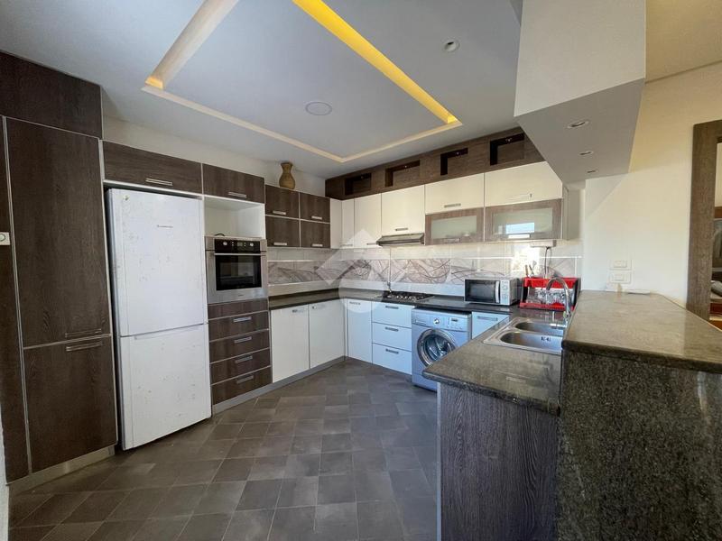 La cuisine est indépendante et entièrement équipée avec tous les électroménagers nécessaires (plaque de cuisson, hotte, four, machine à laver, lave-vaisselle, réfrigérateur). Elle s'ouvre sur un séchoir exploitable qui entoure l'étage.