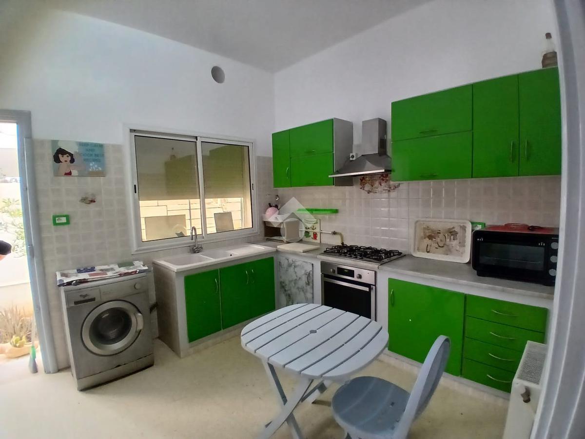 Une cuisine est équipée avec des éléments de rangement nécessaire.