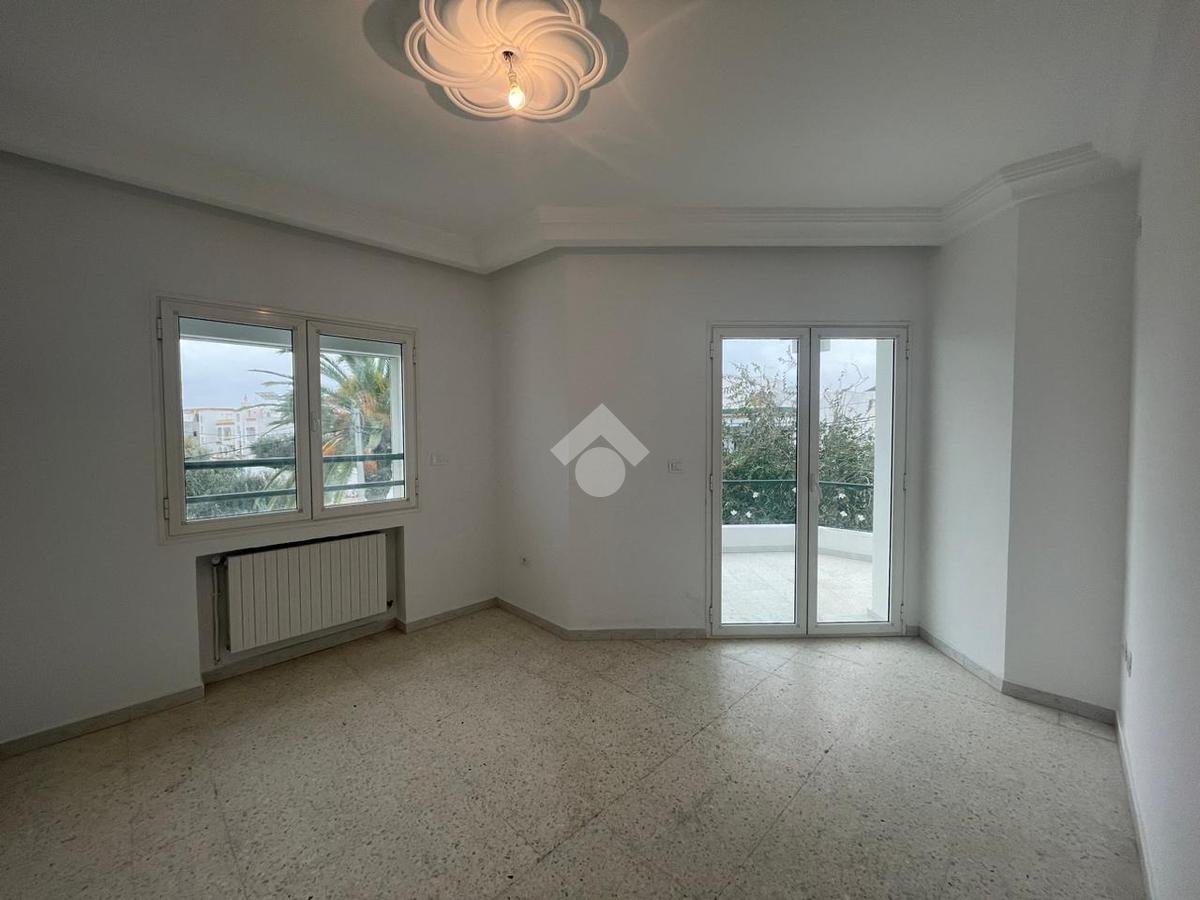 Appartement de type S+2 vide, composé d’un séjour spacieux et lumineux offrant un espace idéal pour aménager un salon et un coin repas.