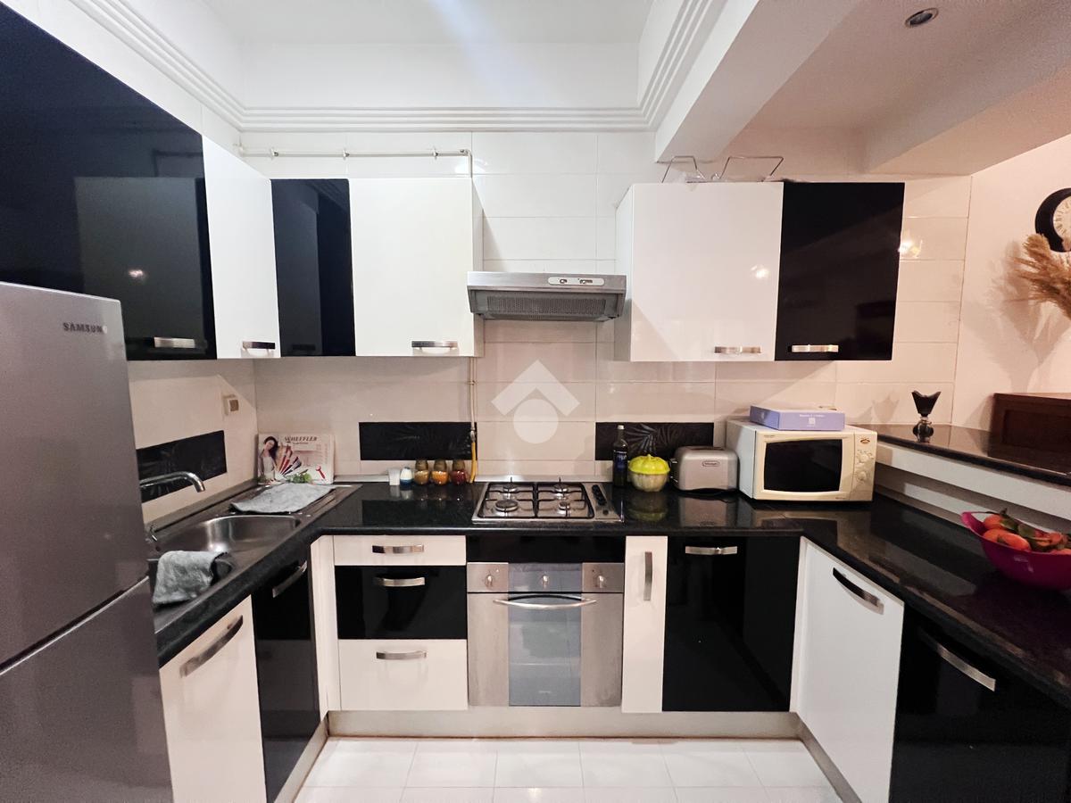 La kitchenette, bien agencée, est équipée de rangements fonctionnels.