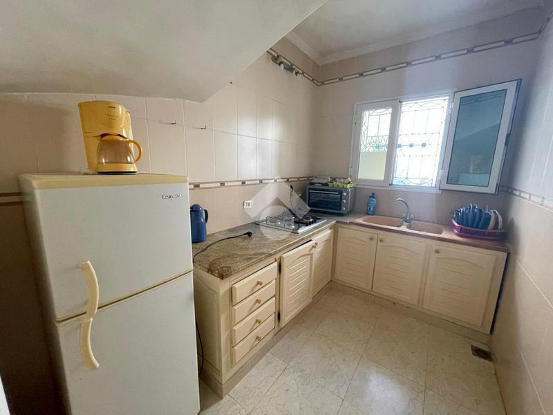 La cuisine est agencée et complétée par les éléments de rangement nécessaires.